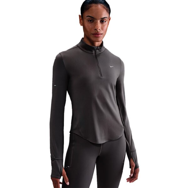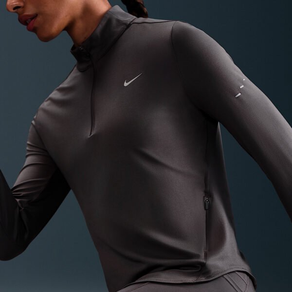 Corre con confianza y comodidad con la Nike Swift Dri-FIT UV, diseñada especialmente para corredoras. Esta capa intermedia ligera y absorbente ayuda a mantener el sudor bajo control mientras bloquea los rayos UV para mayor protección. Su diseño incluye mangas raglán modificadas que ofrecen libertad total de movimiento, ajuste ceñido para un look aerodinámico y prácticos detalles como orificios para los pulgares y ventana para el reloj, perfectos para tus entrenamientos al aire libre.