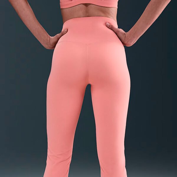Muévete con total libertad, ya sea en tus sesiones de yoga o en un paseo al aire libre. Los leggings acampanados Nike Zenvy están confeccionados con tela InfinaSoft, ligera, ultra suave y a prueba de sentadillas, que se adapta a cada flexión y estiramiento sin perder cobertura. Su diseño estilizado con menos costuras y un bolsillo oculto en la parte trasera te permite llevar tu teléfono o pequeños esenciales con comodidad.